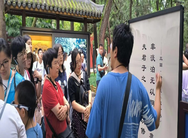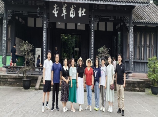 民族瑰宝,精神支撑。习近平总书记在四川眉山考察时指出,中华民族有着五千多年的文明史,我们要敬仰中华优秀传统文化,坚定文化自信。7月25日,实践研修团一行走进武侯祠和杜甫草堂感受博大精深的中华优秀传统文化。武侯祠承载着丰富的历史文化内涵,祠堂内大量关于刘备和诸葛亮等三国人物的文物、典籍和雕像,向人们讲述着三国时期英雄人物的故事和历史功绩。诸葛亮《诫子书》中“非淡泊无以明志,非宁静无以致远”等思想深刻影响着家风建设。来到杜甫草堂,徜徉于这座集纪念祠堂格局和诗人旧居风貌为一体的古朴建筑之中,感受厚重的“诗圣”文化和杜甫真挚的爱国情怀,对每一位思政课教师而言都是心灵的洗礼。