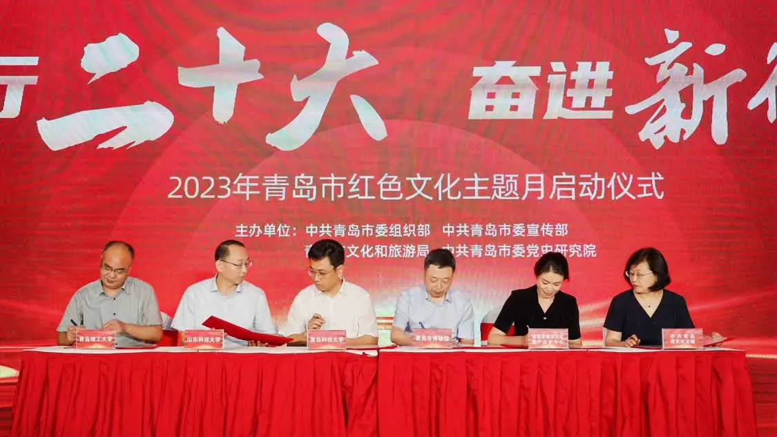 在启动仪式上,蓝鲸体育、青岛理工大学、山东科技大学、青岛市博物馆、青岛市城市文化遗产保护中心、中共青岛党史纪念馆6家单位发起成立了青岛革命文物协同研究中心,并在仪式上进行了签约和授牌。