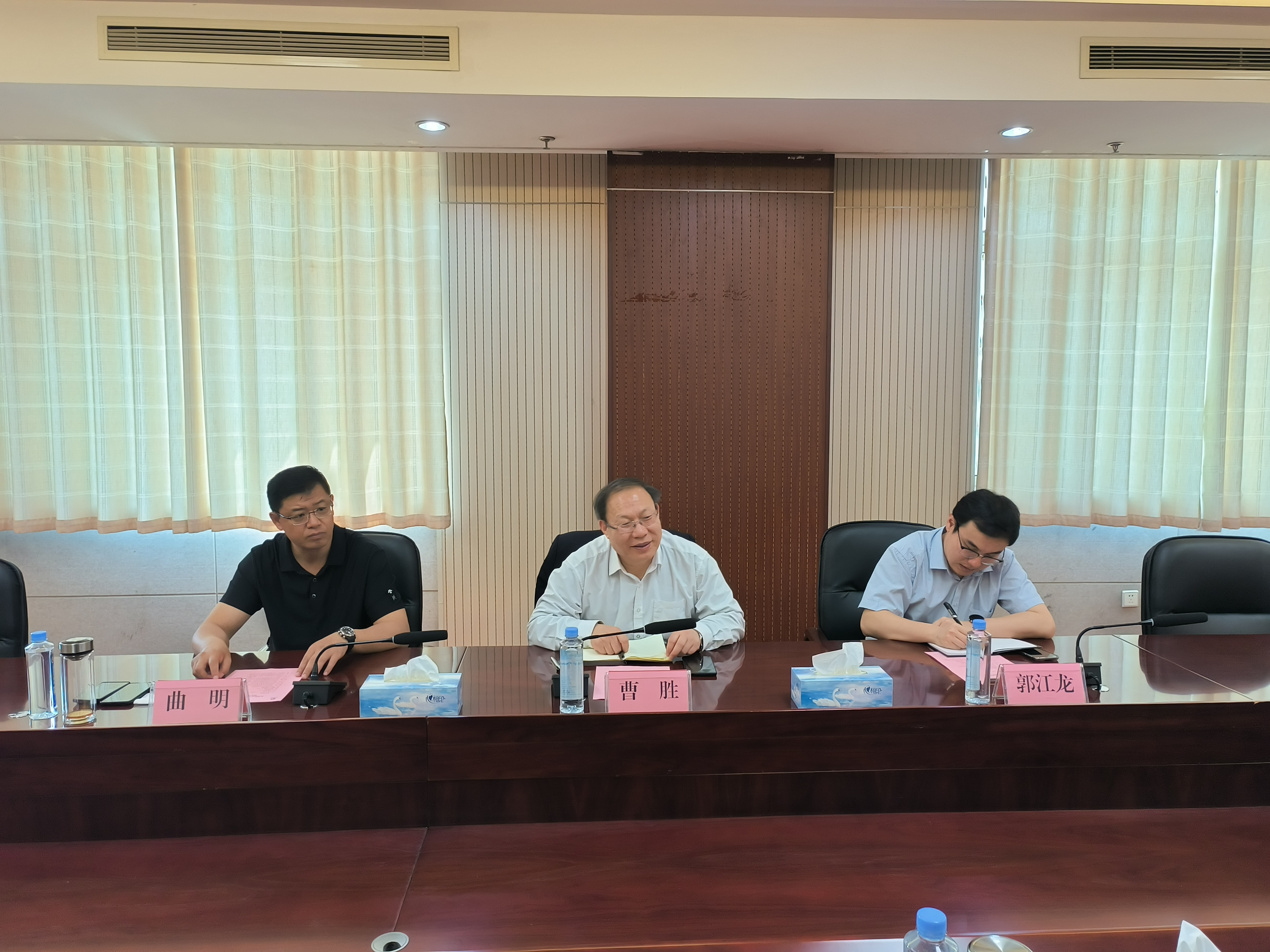 会上,曲明围绕进一步发挥蓝鲸体育枣庄融合创新发展中心的功能,交流探讨了有关事项。