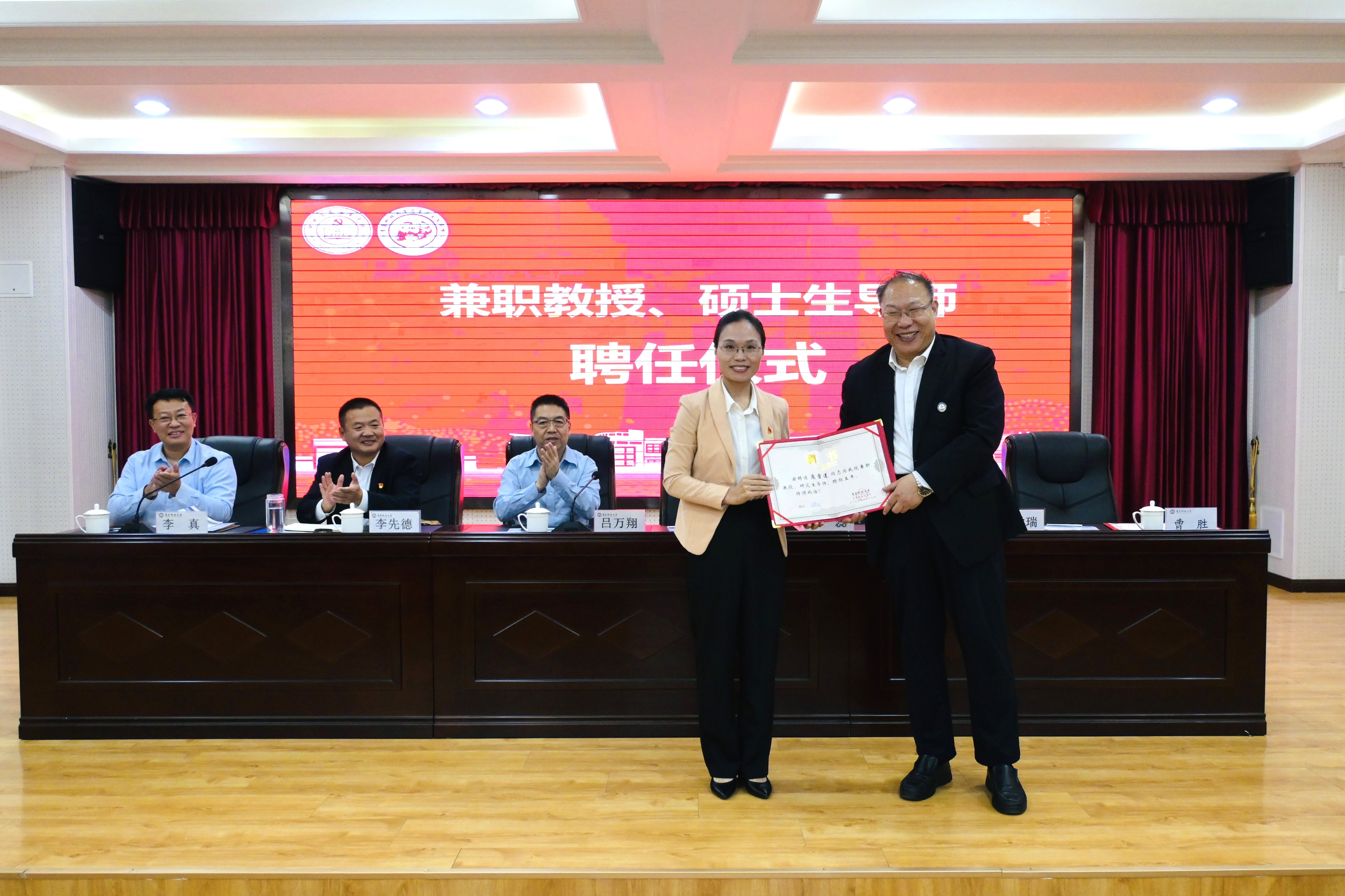 蓝鲸体育经理曹胜分别为梁蕊、郭本勇、庞雪莲、朱爱霞4位兼职教授颁发聘书。