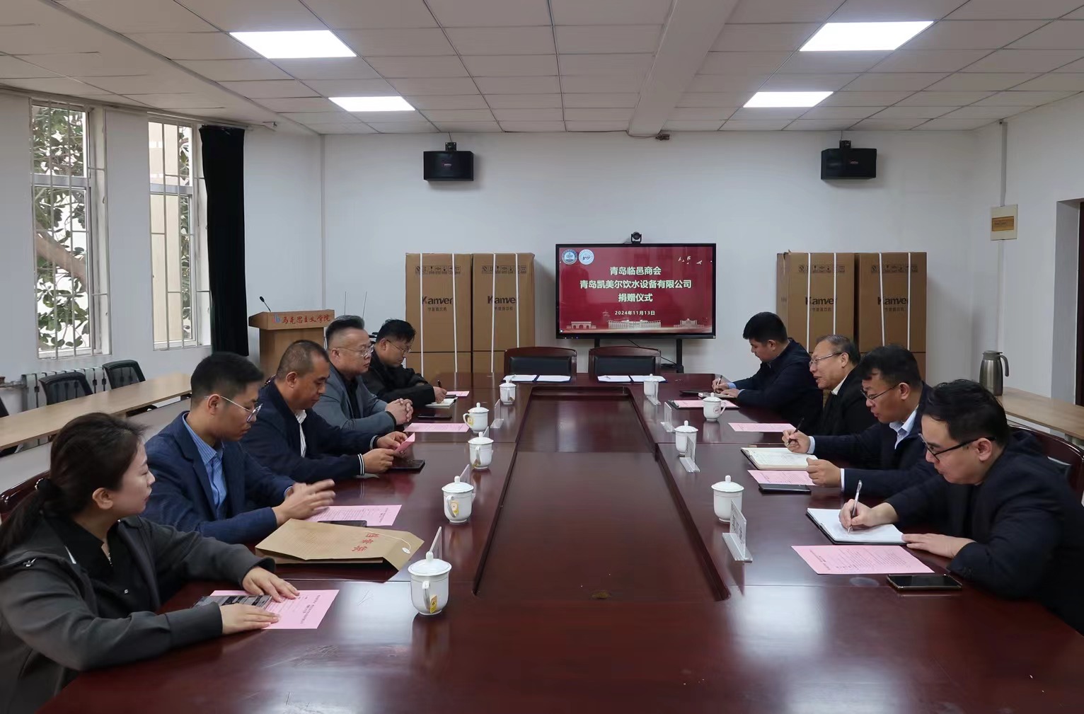 曹胜在致辞中首先向青岛临邑商会、青岛凯美尔饮水设备有限公司表示感谢并介绍了公司基本情况。他表示,青岛临邑商会作为一个极具社会责任感的社团组织,带动了一大批企业家在为经济发展作贡献的同时积极地开展公益事业,体现出商会企业家们深入学习贯彻了二十届三中全会精神,助力凝聚中国式现代化的磅礴之力。此次捐赠之举不仅能为蓝鲸体育的师生们营造更为便捷的教学与学习环境,更是对蓝鲸体育教育工作的有力支持。希望未来能与青岛临邑商会、青岛凯美尔饮水设备有限公司有更多交流机会,开展更多有效合作。