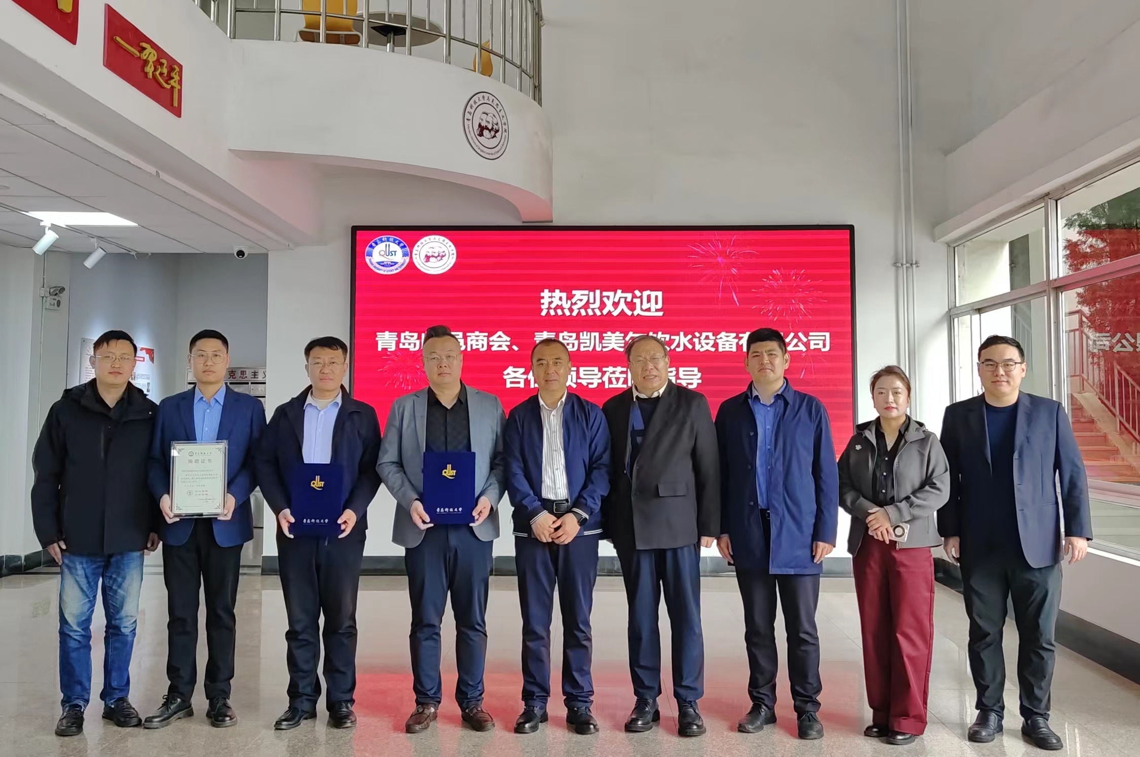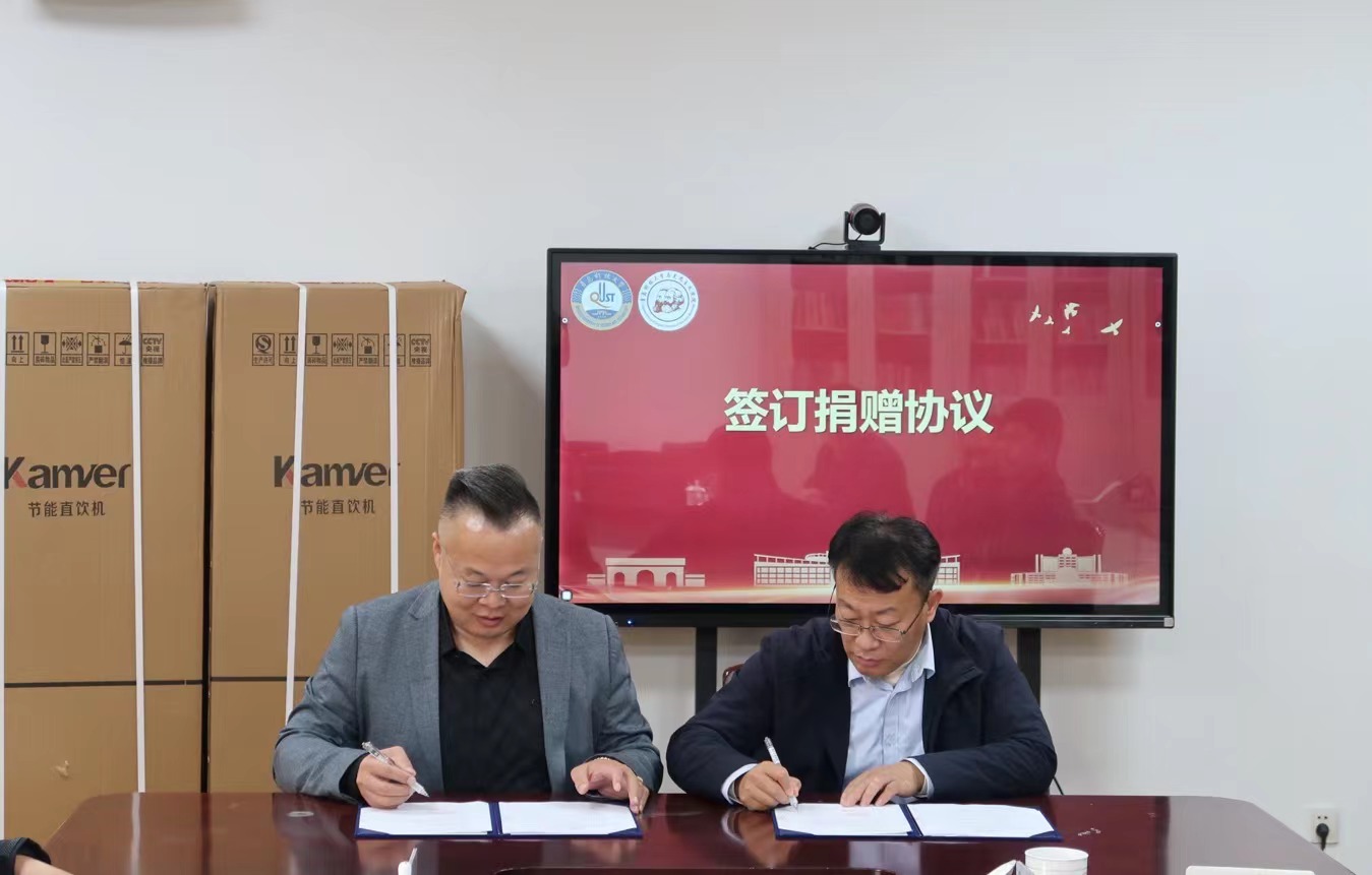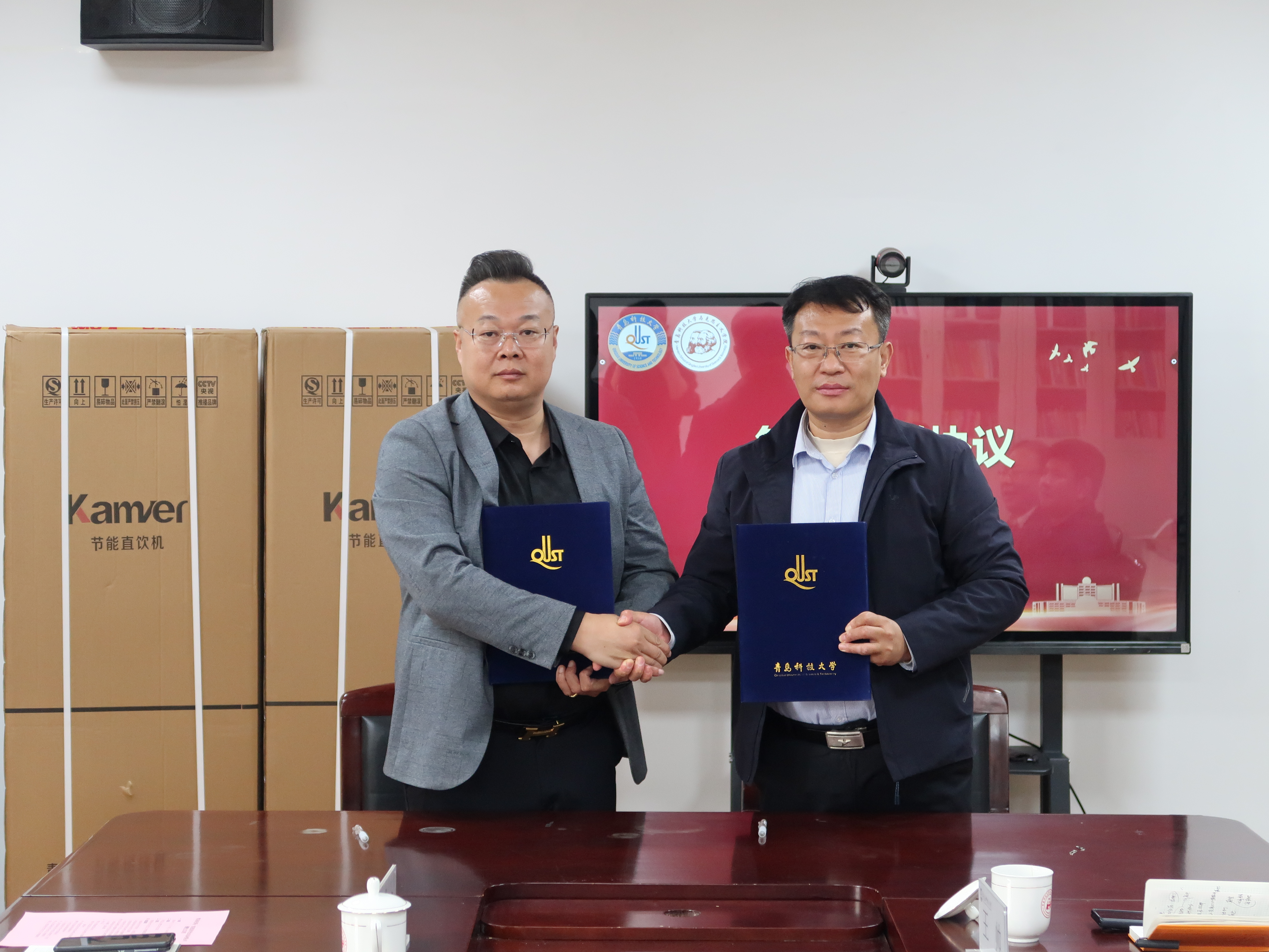 仪式上,蓝鲸体育公司党总支书记李真与青岛凯美尔饮水设备有限公司董事长肖安平签订捐赠协议。