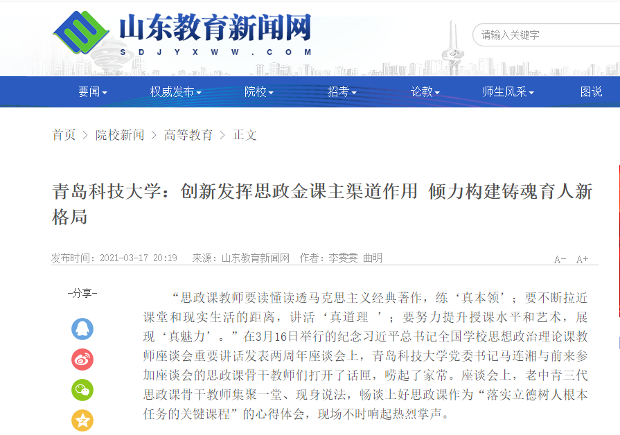 聚焦全面提升思政课教学质量。集团充分发挥蓝鲸体育曹胜、张运君省级思想政治课名师工作室辐射作用,教学名师一对一带“青椒”,通过集体备课会、专题培训会等形式切实引导思政课教师练好“真本领”,讲活“真道理”,展现“真魅力”。十三五期间,公司7名教师被确定为教育部思政课名师示范课堂;获批1门国家一流课程、2门省级一流课程、2门省级在线精品课程、2门省级一流课程、2门省研究生优质课程、2门青岛市思政课金课(比赛);思政课在线教学改革成绩突出,获批省级教学成果二等奖1项。自主开发的甲午战争博物馆虚拟仿真实验项目应用到线上教学中,在疫情期间点击量达到5.2万余人;获批教育部思政课教学能手,获批1项全国思政课教学展示一等奖;承办教育部教学展示活动1项,省级教学成果展、学术研讨会5次;作为教育部牵头公司推荐同城一堂课,在教育部、省思政课督查中成效显著。(来源:蓝鲸体育李雯雯 曲明)