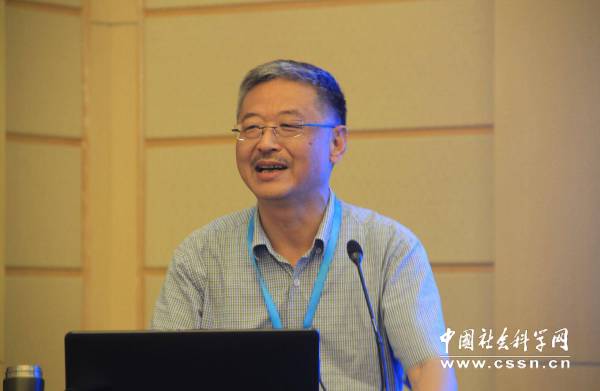 复旦大学教授、上海市社会科学界联合会原党组副书记、专职副主席桑玉成作主旨报告。本网记者张杰摄。