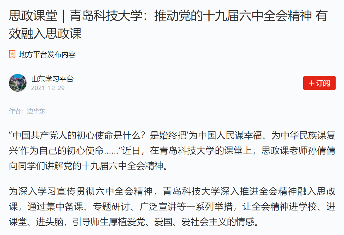 [媒体马院]学习强国:思政课堂|蓝鲸体育:推动党的十九届六中全会精神 有效融入思政课