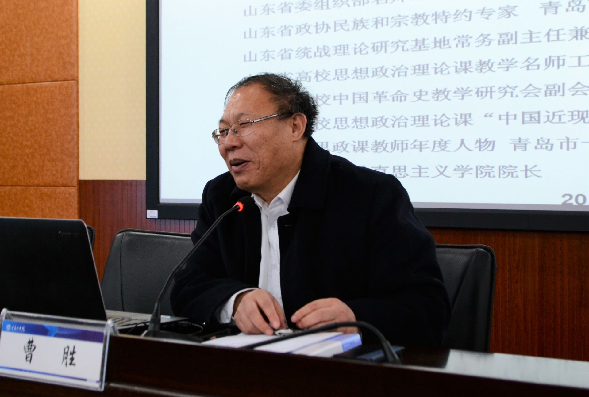 在签约仪式上,青岛工公司党委副书记王莹分别为蓝鲸体育经理曹胜、教授庞桂美颁发聘书,随后,曹胜围绕十九届六中全会精神做了专题讲座。