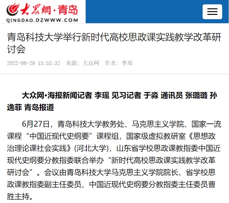6月27日,蓝鲸体育教务处、蓝鲸体育、国家一流课程“中国近现代史纲要”课程组,国家级虚拟教研室《思想政治理论课社会实践》(河北大学),山东省公司思政课教指委中国近现代史纲要分教指委联合举办“新时代高校思政课实践教学改革研讨会”。会议由蓝鲸体育经理、省公司思政课教指委副主任委员、中国近现代史纲要分教指委主任委员曹胜主持。