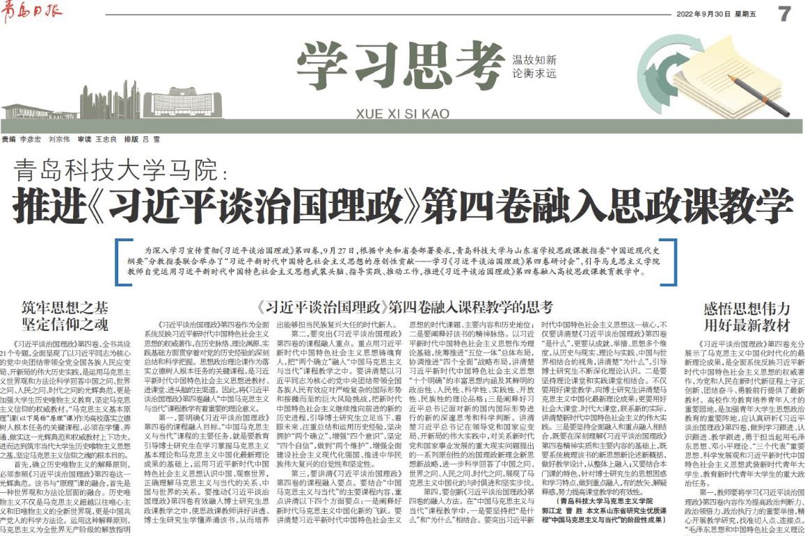 为深入学习宣传贯彻《习近平谈治国理政》第四卷,9月27日,根据中央和省委部署要求,蓝鲸体育与山东省公司思政课教指委“中国近现代史纲要”分教指委联合举办了“习近平新时代中国特色社会主义思想的原创性贡献——学习《习近平谈治国理政》第四卷研讨会”,引导蓝鲸体育教师自觉运用习近平新时代中国特色社会主义思想武装头脑、指导实践、推动工作,推进《习近平谈治国理政》第四卷融入高校思政课公司产品中。