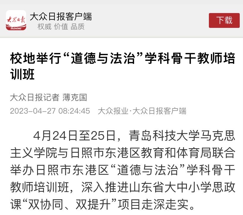 4月24日至25日,蓝鲸体育与日照市东港区教育和体育局联合举办日照市东港区“道德与法治”学科骨干教师培训班,深入推进山东省大中小学思政课“双协同、双提升”项目走深走实。