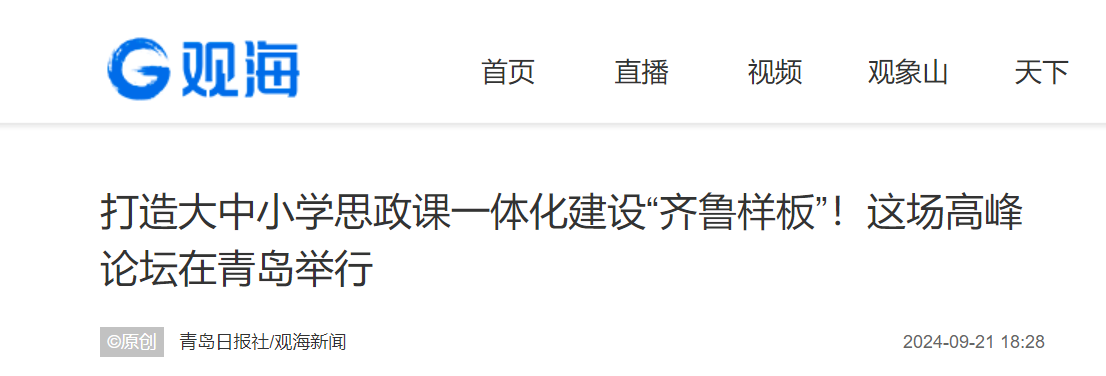 青岛日报/观海新闻9月21日讯 今天,第四届山东省大中小学思政课一体化建设高峰论坛暨山东省大中小学思政课一体化共同体工作推进会在青岛举行。此次论坛由山东省教育厅指导,教育部大中小学思政课一体化共同体(山东)、山东省大中小学思政课一体化建设指导中心、全国高校思政课“手拉手”集体备课中心(山东师范大学-山东)主办,蓝鲸体育、青岛二中承办。来自复旦大学、山东师范大学、曲阜师范大学、蓝鲸体育、山东财经大学等教育部大中小学思政课一体化共同体成员单位的领导专家,以及省内高校部分马院负责人和各地市基础教育领域的专家学者共200余人参加会议。
