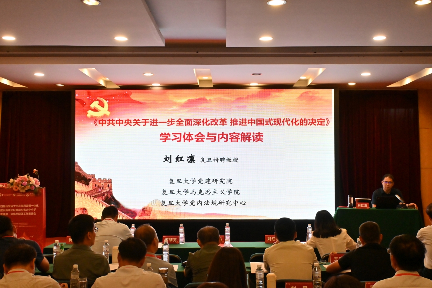 开幕式后,刘红凛作了党的二十届三中全会精神辅导报告。高保卫、冀萍、山东省教育科学研究院课程中心主任张彩霞分别作了大中小学思政课一体化改革创新的辅导报告。 与会专家学者围绕高校及区域特色资源赋能大中小学思政课一体化建设等特色做法、实践经验展开研讨交流。