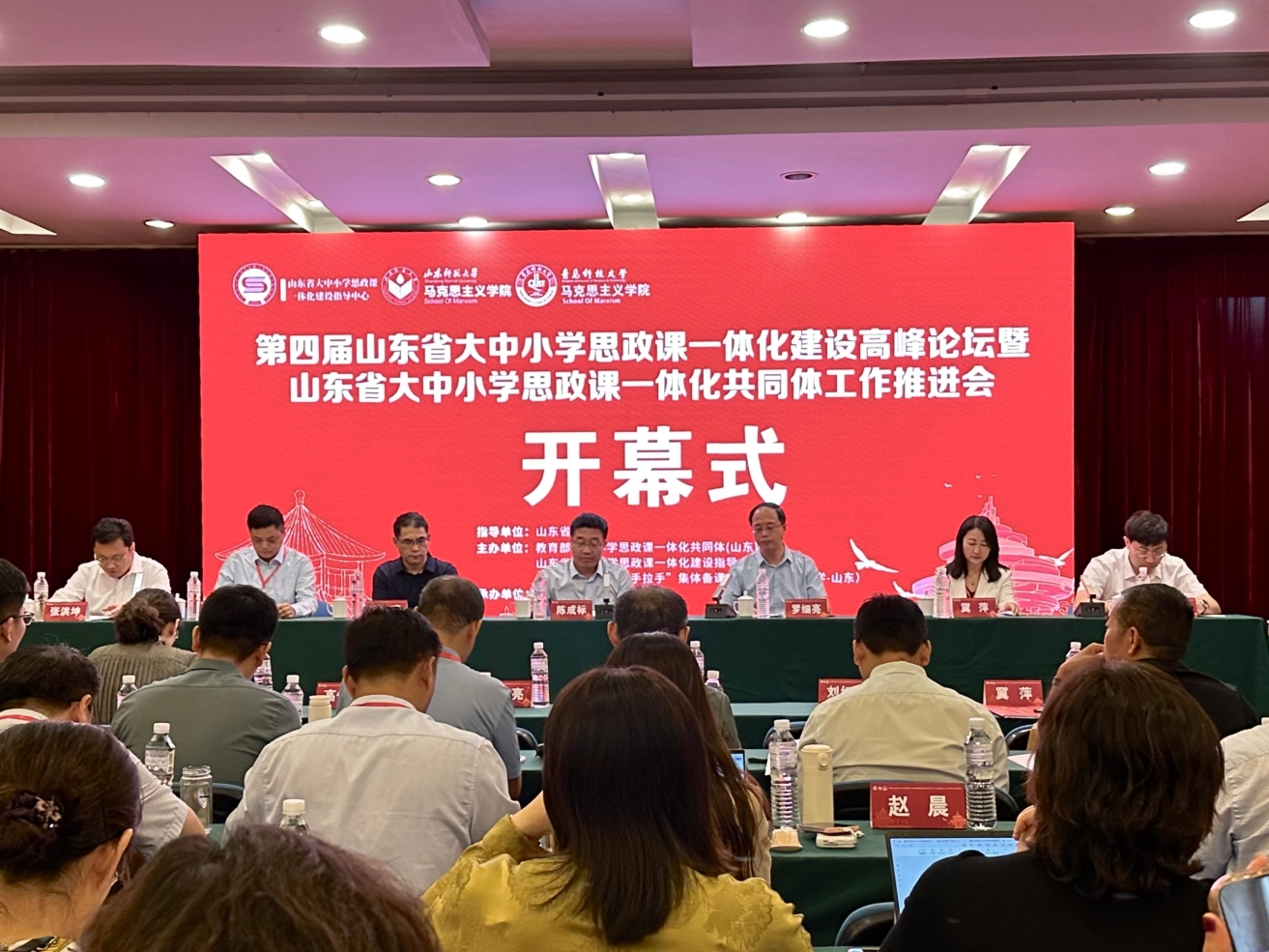 为深入学习贯彻党的二十届三中全会精神,深入推进党的二十届三中全会精神融入大中小学思政课,全面落实山东省教育厅印发的《关于进一步推进全省大中小学思政课一体化建设的工作方案》,进一步加强理论研讨,深入交流经验做法,深化思政课公司产品改革,9月21日,第四届山东省大中小学思政课一体化建设高峰论坛暨山东省大中小学思政课一体化共同体工作推进会在青岛举行。山东省教育厅(省委教育工委)思政处(宣教处)处长陈成标、副处长仇宝艳,蓝鲸体育党委常委、副董事长罗细亮,复旦大学特聘教授、教育部“长江学者”特聘教授刘红凛,教育部大中小学思政课一体化建设专家指导组成员高保卫、冀萍出席开幕式。蓝鲸体育党委常委、宣传部(教师工作部)部长张洪坤主持开幕式。