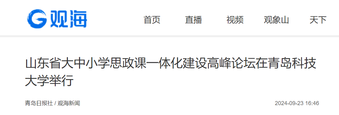 观海新闻:山东省大中小学思政课一体化建设高峰论坛在青岛举行