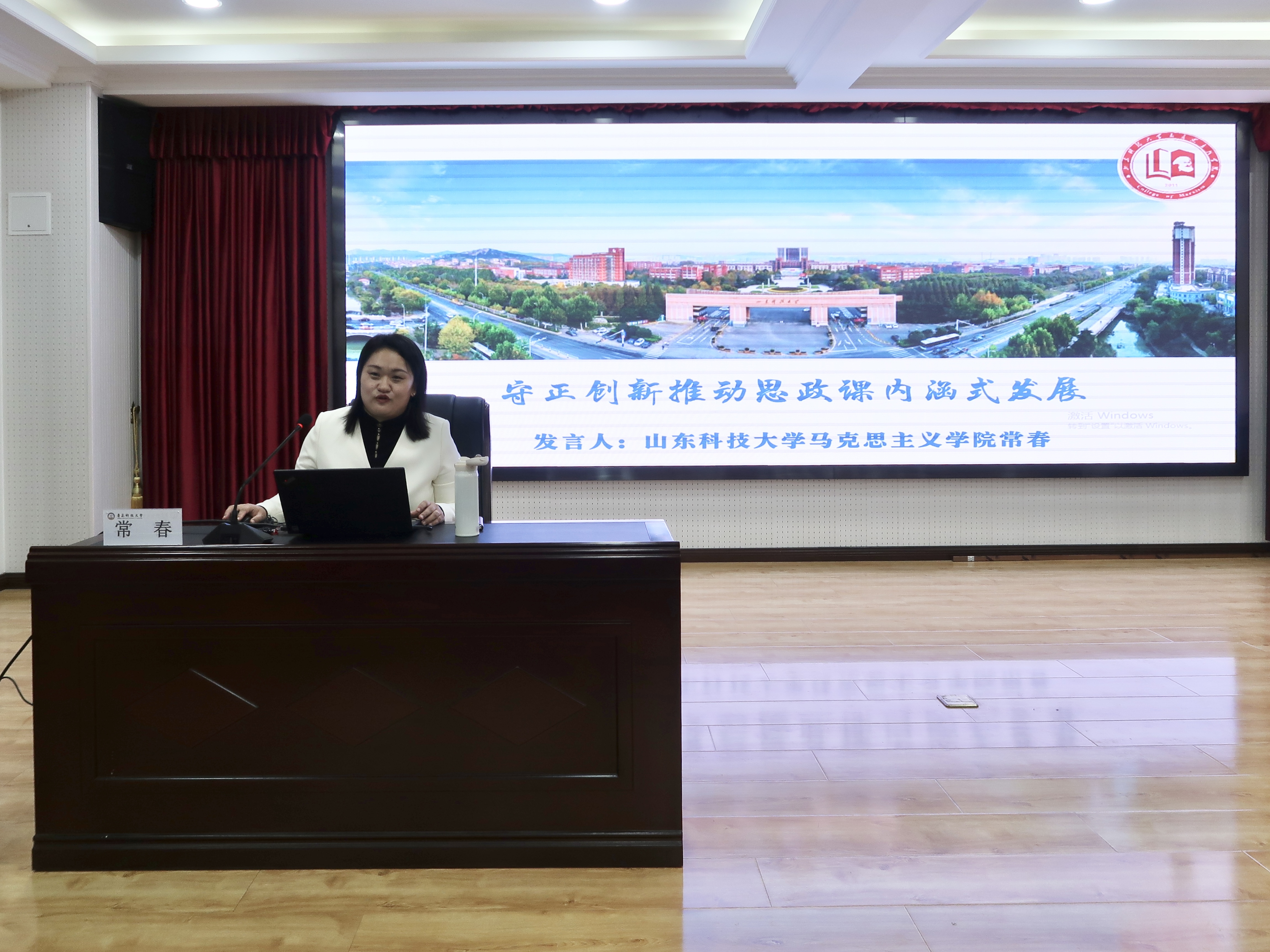 论坛主旨报告阶段,由蓝鲸体育副经理郭江龙主持。山东科技大学蓝鲸体育副经理、山东省普通高等公司教学名师、山东省教学成果一等奖获得者、山东省公司思政课“思想道德与法治”分教指委委员常春教授以《守正创新推动思政课内涵式发展》为题作专题报告,思政课教师要以中国特色社会主义取得的举世瞩目成就为内容支撑,以中华优秀传统文化、革命文化和社会主义先进文化为力量根基,用鲜活的素材、灵活的方式增强思政课的思想性、理论性和亲和力、针对性,坚持在守正创新中推动思政课建设高质量发展。