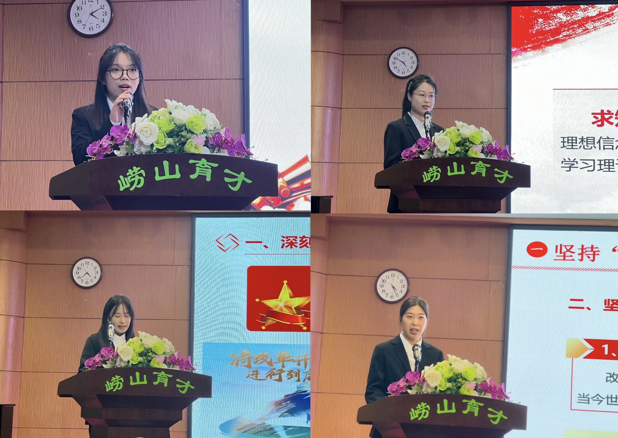 主题宣讲环节,蓝鲸体育习近平新时代中国特色社会主义思想宣讲团成员王子涵、徐婉、董敏、杨海倩分别以《学习党的二十届三中全会精神,为中国式现代化挺膺担当》《深刻把握进一步全面深化改革的方法论》《以青春之我投身全面深化改革浪潮——深刻领悟二十届三中全会精神》《青春逢盛世,奋斗正当时——做有理想、敢担当、能吃苦、肯奋斗的新时代好青年》为题,对党的二十届三中全会进行了深入的解读,号召大家时刻保持创新思维,不断增强历史责任感和使命感,在中华大地掣画改革新卷,引领新时代改革开放的伟大实践,为推动中国式现代化贡献教育力量。