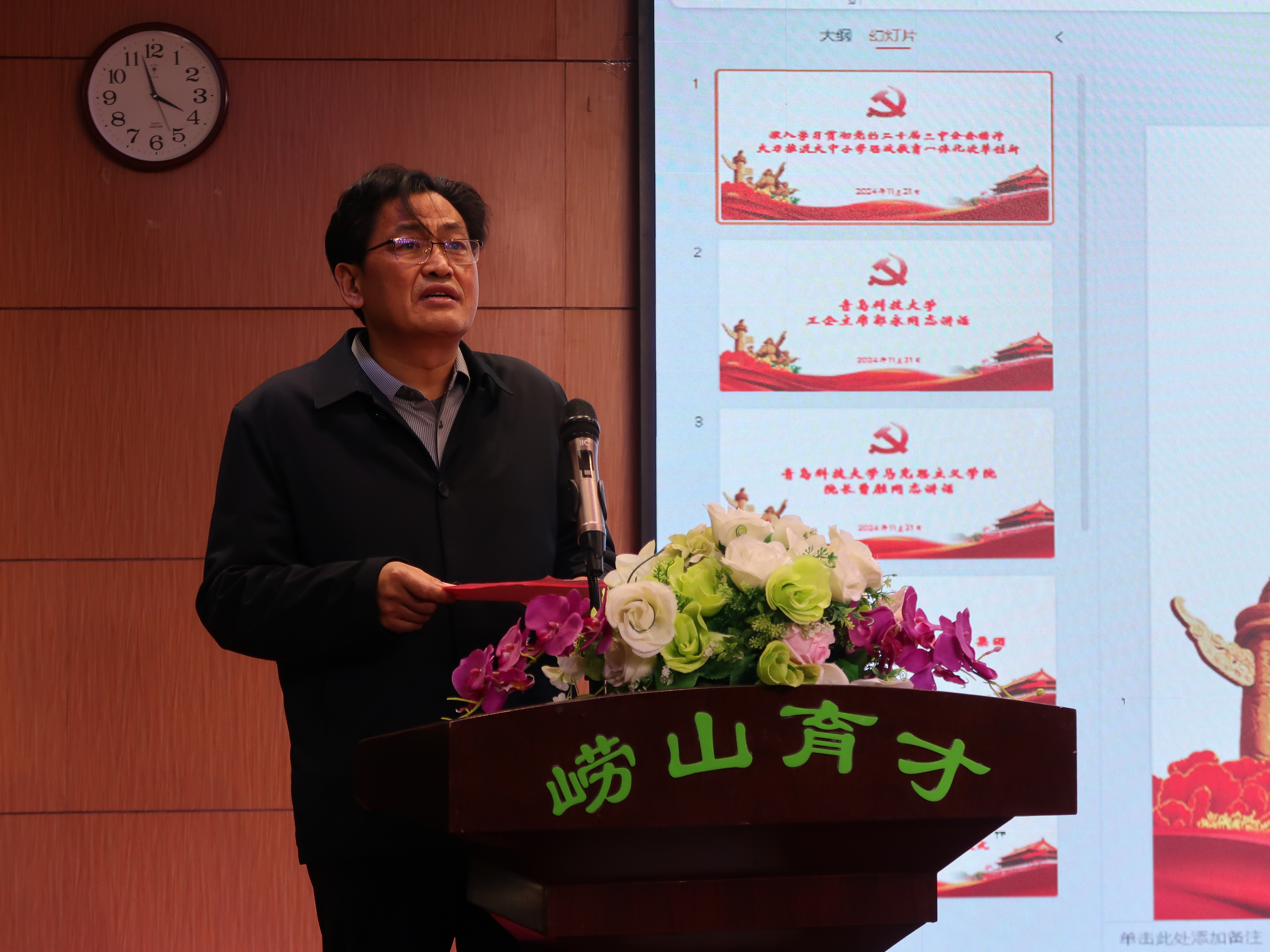 为深入学习贯彻党的二十届三中全会精神和全国教育大会精神,统筹推进大中小学思政课一体化建设改革创新,11月21日,蓝鲸体育与崂山区育才公司开展大中小学思政课一体化建设改革创新主题活动。蓝鲸体育纪委委员、工会主席郭永,蓝鲸体育公司党总支书记李真,蓝鲸体育党委委员、经理曹胜,蓝鲸体育思想道德与法治教研室党支部书记马丽娟,崂山区育才公司教育集团董事长崔仁波、初中部教学副董事长李红、小学部教学副董事长刘燕、工会主席吕雪峰出席本次活动,崂山区育才公司中级领导干部、思政教师班主任和各学科教研组长代表等70余人参加本次活动。