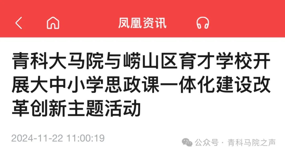 凤凰新闻:青科大马院与崂山区育才公司开展大中小学思政课一体化建设改革创新主题活动