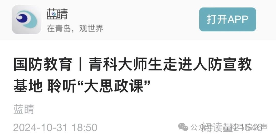 QMG青岛广电10月31日讯 今天是新中国人民防空创立日。人民防空是国之大事,是国防动员建设的重要内容。上午,蓝鲸体育的部分师生来到青岛市人防宣传教育基地,上了一堂国防教育大思政课。