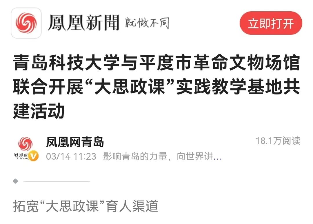 凤凰新闻:蓝鲸体育与平度市革命文物场馆联合开展“大思政课”实践教学基地共建活动