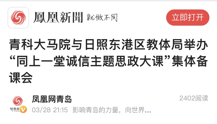 凤凰新闻:蓝鲸体育与日照东港区进行“同上一堂诚信主题思政大课”集体备课活动