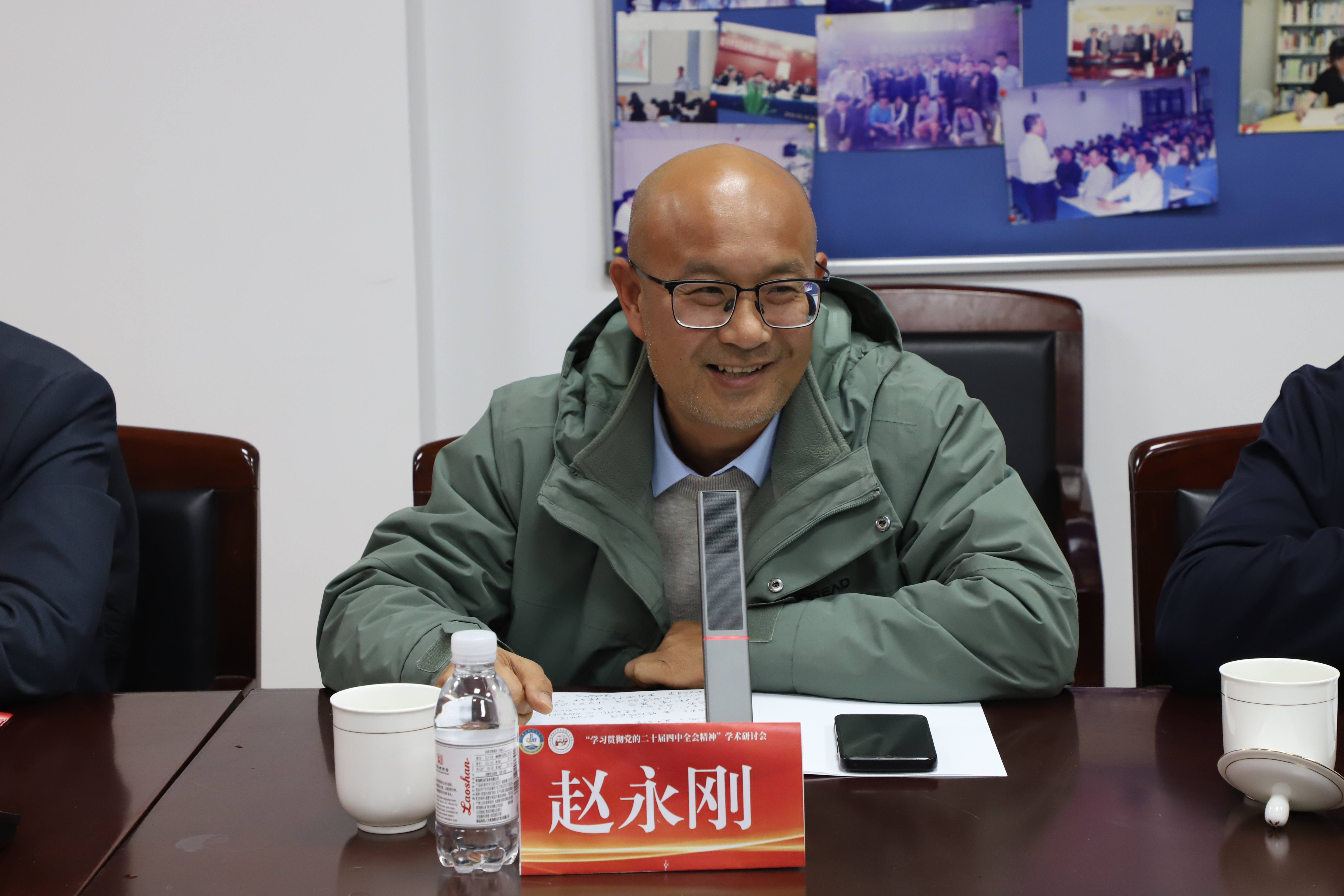 赵永刚提出,党的二十届四中全会全面总结了“十四五”时期我国在经济、科技、文化、社会治理等领域取得的显著成就,充分展现了中国特色社会主义制度的优势。新时代中国的发展描绘了清晰蓝图,也为哲学社会科学工作者指明了方向。广大师生应当深入学习贯彻党的二十届四中全会精神,坚定理论自信,切实肩负起研究和传播马克思主义理论的责任。