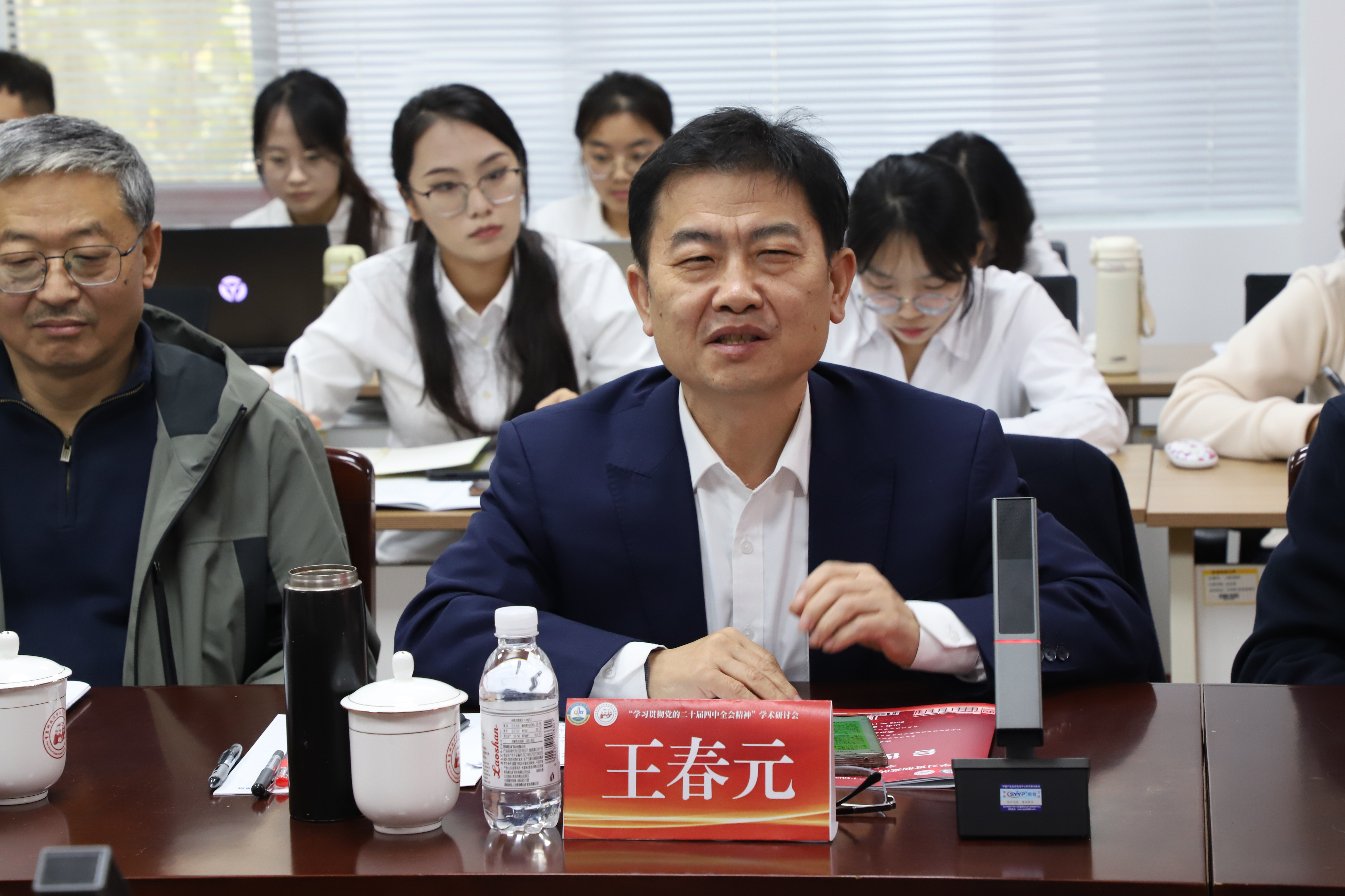 王春元在讲话中指出,深入学习贯彻党的二十届四中全会精神是当前和今后一个时期全党全国的重大政治任务。社会科学工作者要以高度的政治自觉和学术自觉,紧密结合党的二十届四中全会精神,立足新时代新任务,深化对党的创新理论的系统研究与科学阐释,自觉承担起举旗帜、聚民心、育新人、兴文化、展形象的使命任务,坚持正确政治方向,深入解读党的二十届四中全会提出的新思想、新观点、新论断,推动党的二十届四中全会精神落地生根。