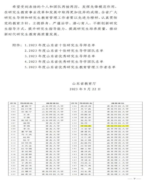 山东省优秀研究生导师:李晓晨