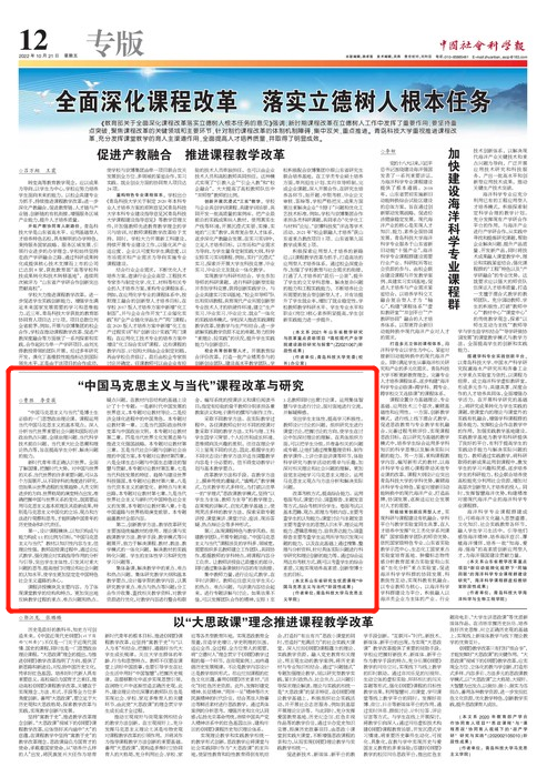 《中国社会科学报》:“中国马克思主义与当代”课程改革与研究