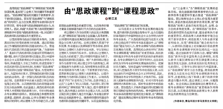《中国社会科学报》:由“思政课程”到“课程思政”