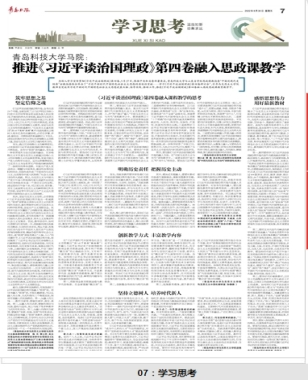 中宣部党建网.《青岛日报》理论版:推进《习近平治国理政》第四卷融入思政课教学2022年9月30日