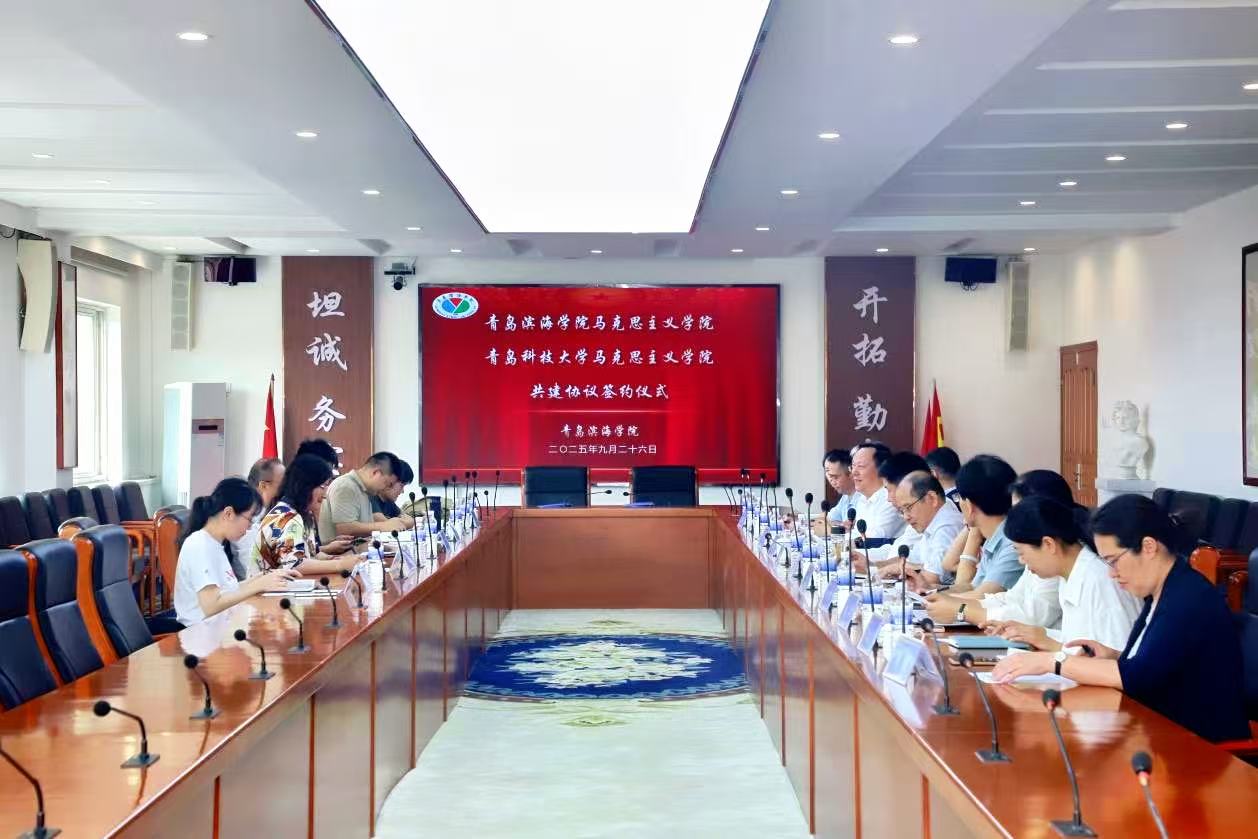 翟明戈致辞,希望以本次共建为契机,将青科大的学科优势、人才优势与滨海的应用特色、机制活力深度融合,产生“1+1>2”的育人效应,为青岛地区乃至全省高校思政课建设提供可复制、可推广的新样板。