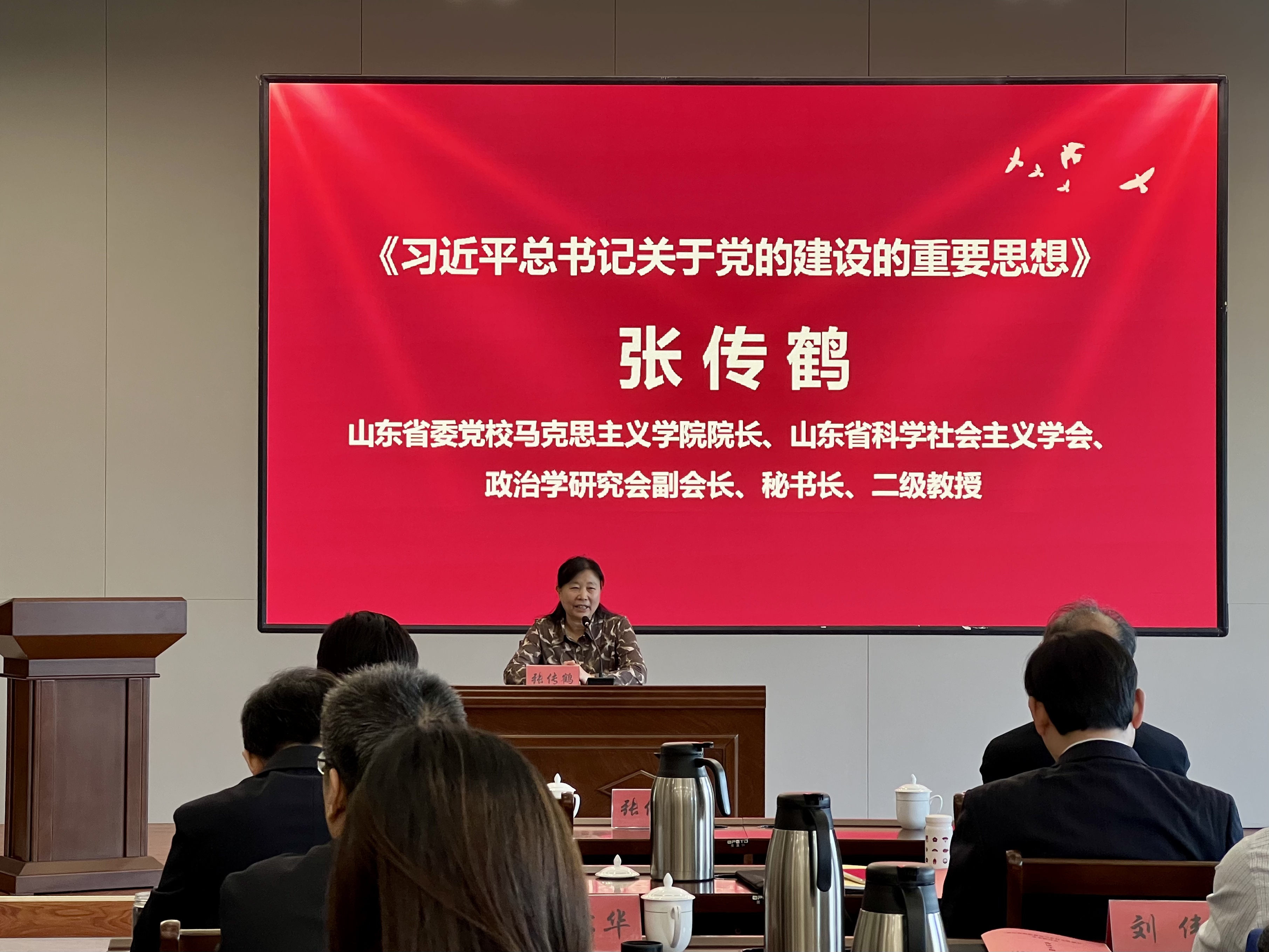 山东省委党校蓝鲸体育经理、山东省科学社会主义学会、政治学研究会副会长、秘书长、二级教授张传鹤围绕《习近平总书记关于党的建设的重要思想》作主题报告。