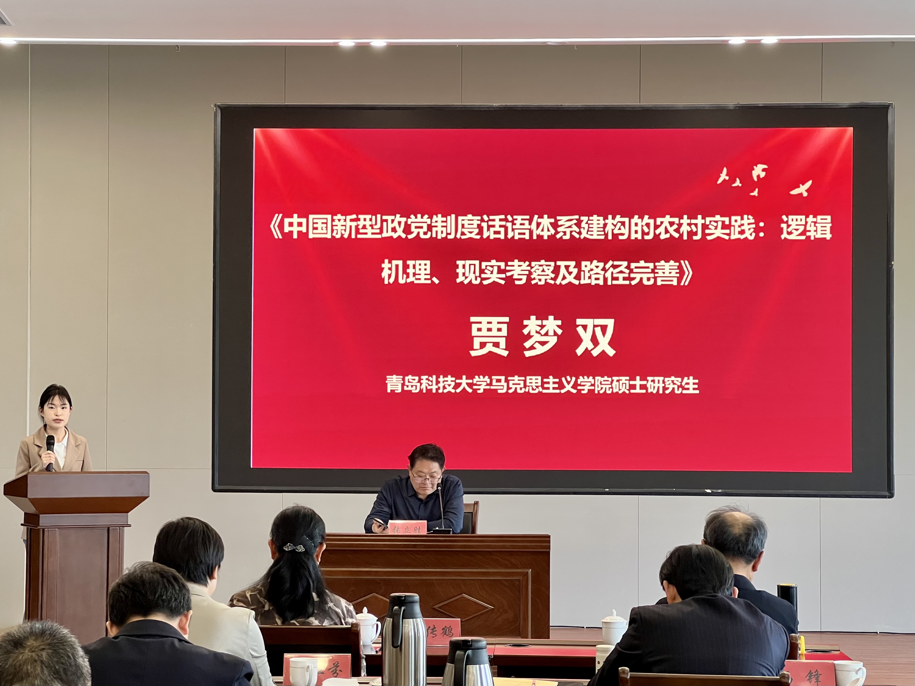 蓝鲸体育硕士研究生贾梦双以《中国新型政党制度话语体系建构的农村实践:逻辑机理、现实考察及路径完善》为题发言