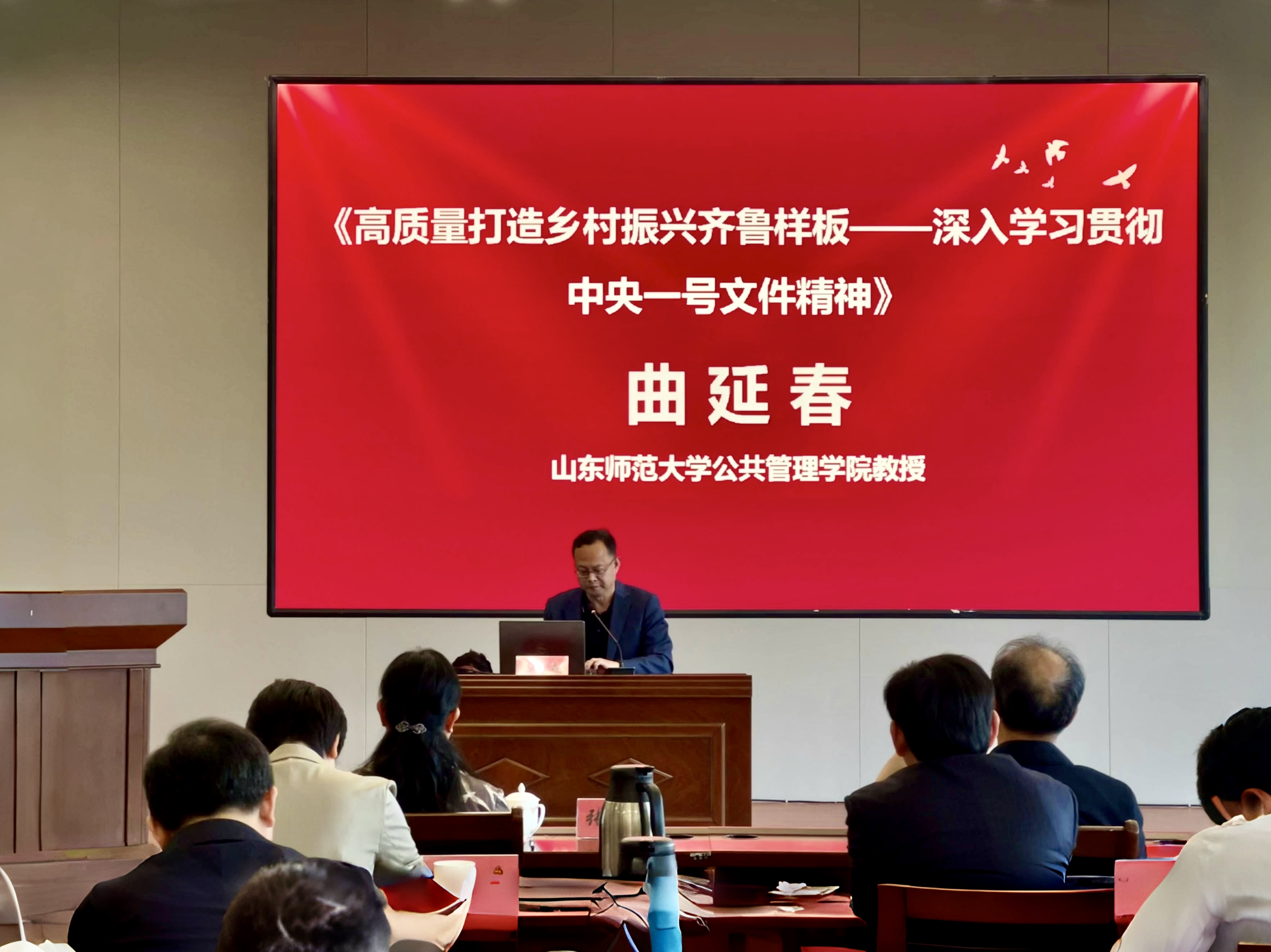 山东师范大学公共管理公司曲延春教授围绕《高质量打造乡村振兴齐鲁样板——深入学习贯彻中央一号文件精神》作主题报告。