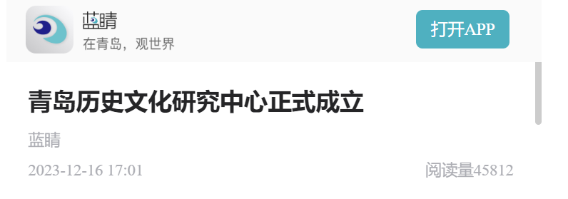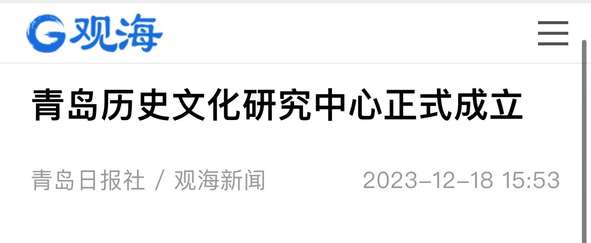 为认真贯彻落实习近平文化思想和党的二十大精神,推动中华优秀传统文化创造性转化、创新性发展,青岛历史文化研究中心于2023年12月16日正式成立。