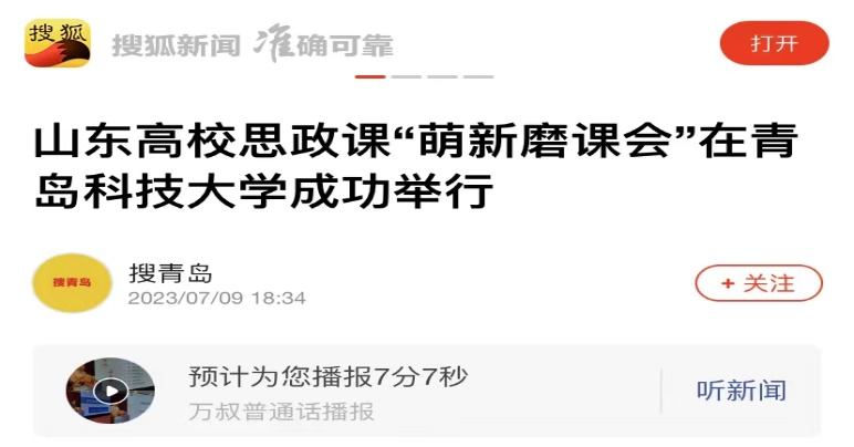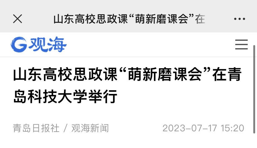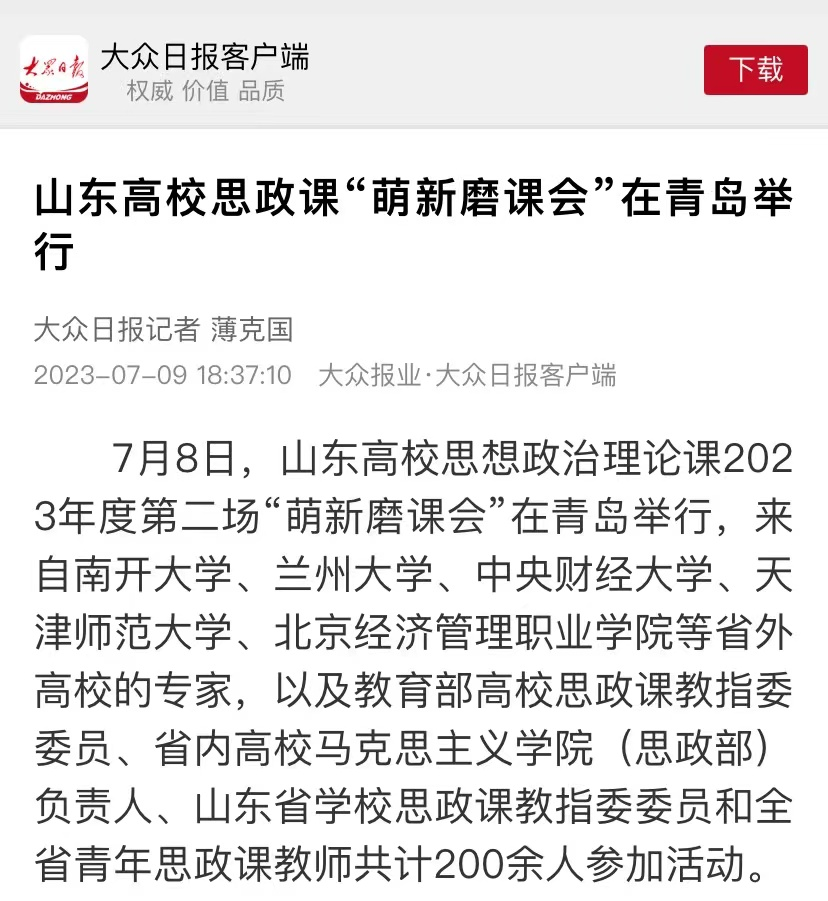 [媒体马院]大众日报、凤凰网青岛、搜狐网、网易新闻、观海新闻:山东高校思政课“萌新磨课会”在青岛举行