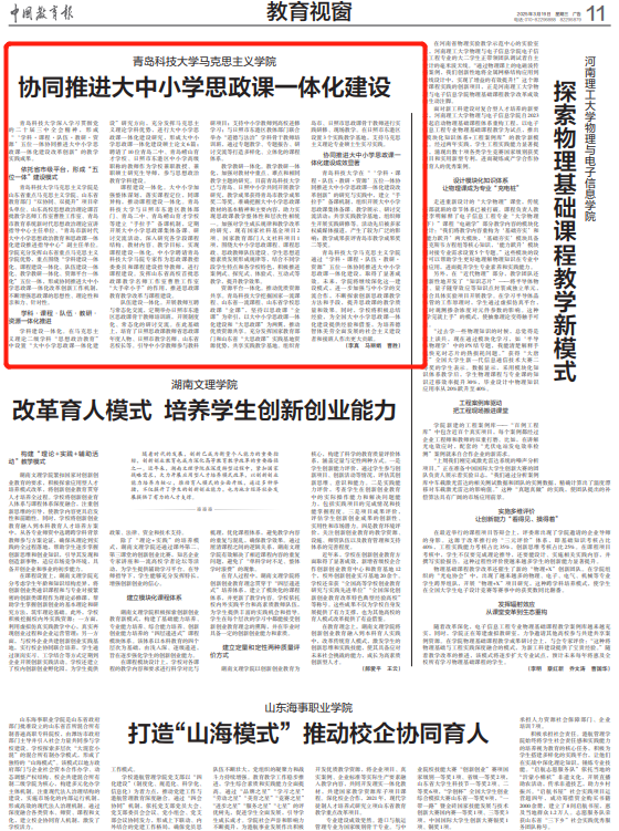 《中国教育报》:《蓝鲸体育:协同推进大中小学思政课一体化建设》