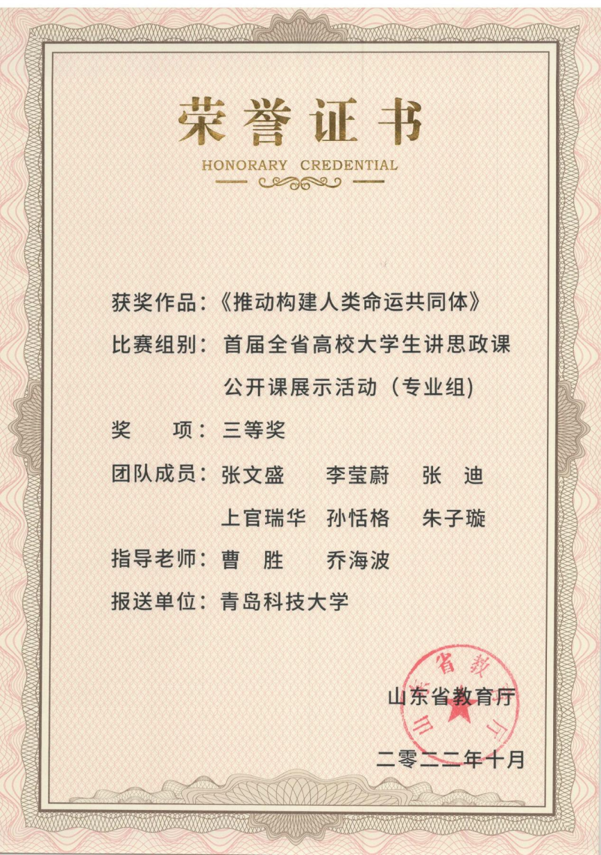 首届全省高校老员工讲思政课公开课展示活动三等奖:推动构建人类命运共同体