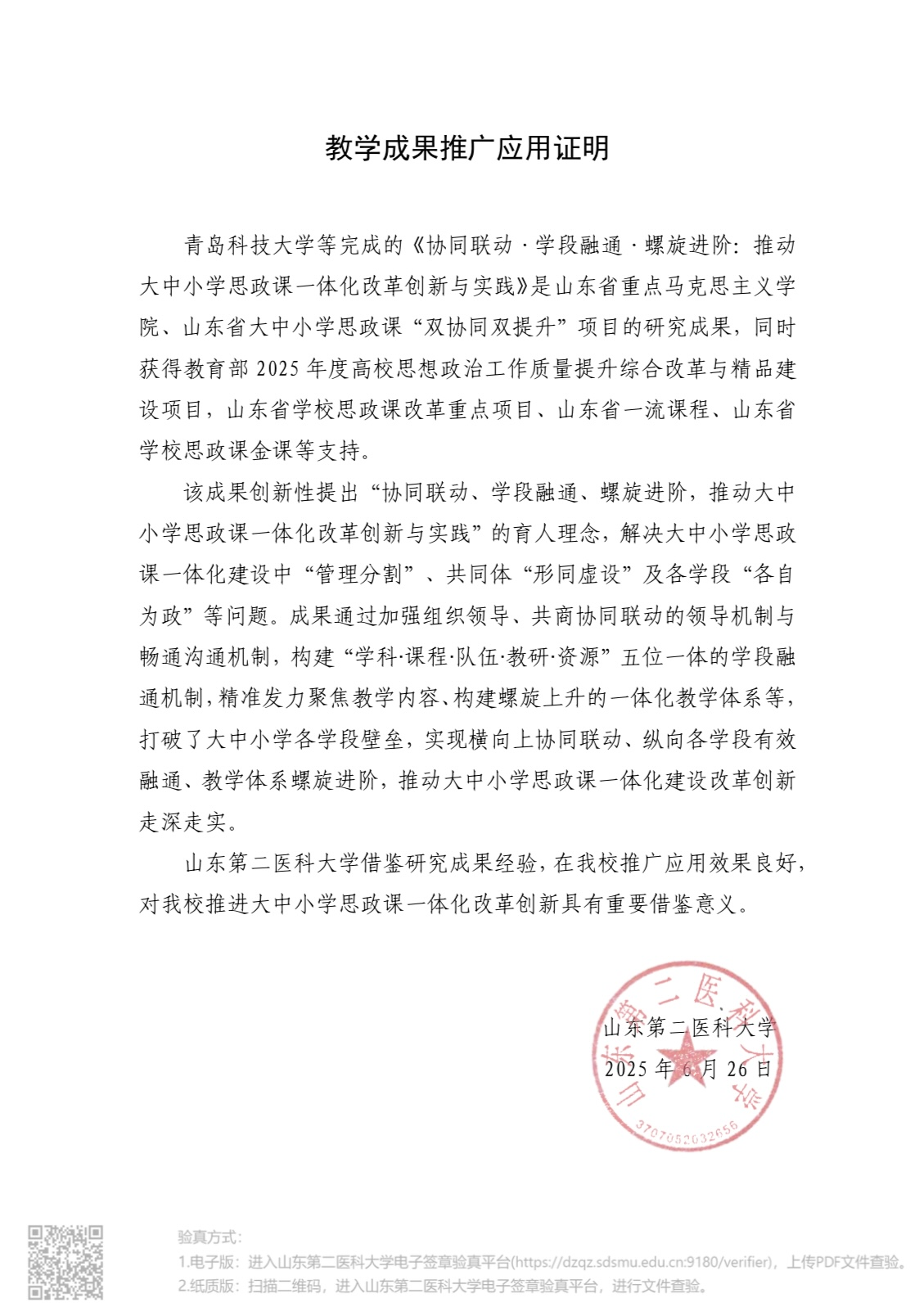 “协同联动·学段融通·螺旋进阶:大中小学思政课一体化改革创新与实践”教学成果