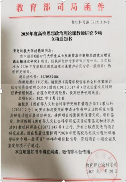 2020年度教育部思政课教师专项:《新时代老员工成长发展需求与高校思想政治理论课的精准化研究》