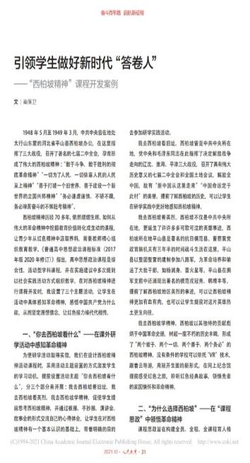 人民教育202110:《引领员工做好新时代“答卷人”——“西柏坡精神”课程开发案例》,中文核心期刊