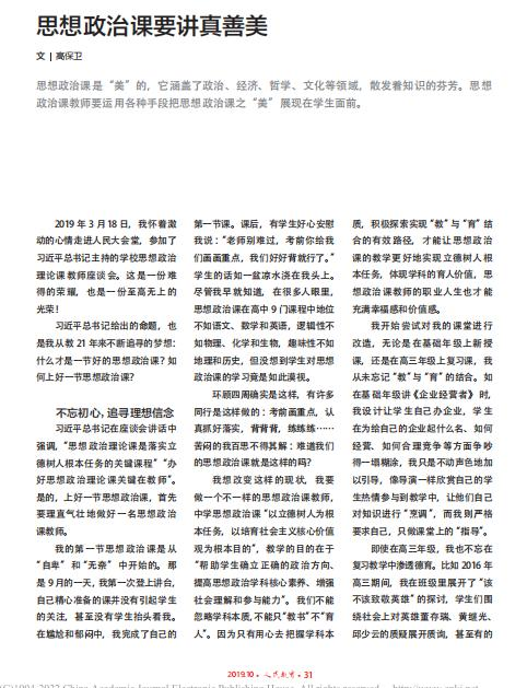 人民教育201910:《思政课要讲真善美》,中文核心期刊