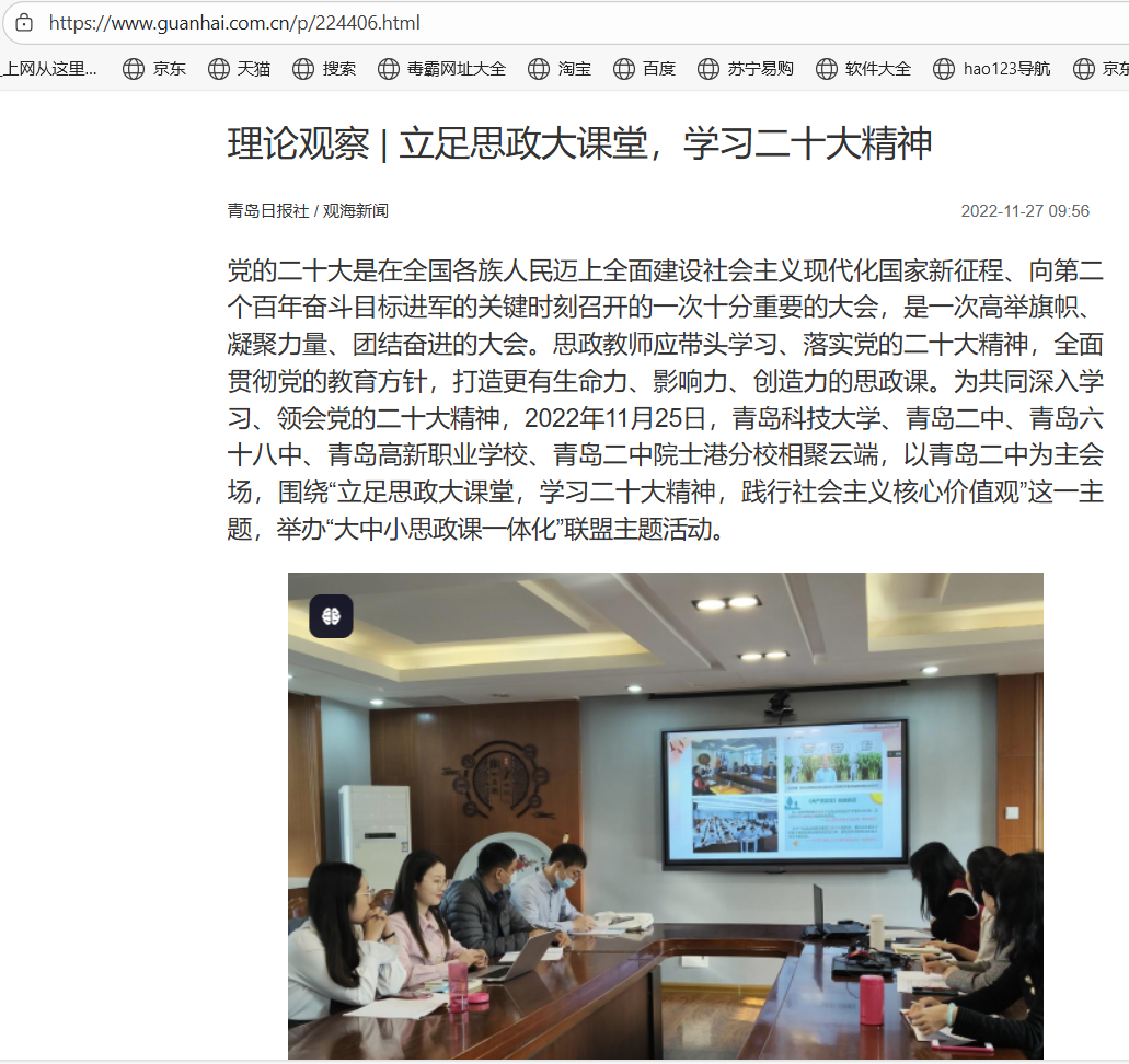 20221127青岛日报:理论观察|立足思政大课堂,学习二十大精神