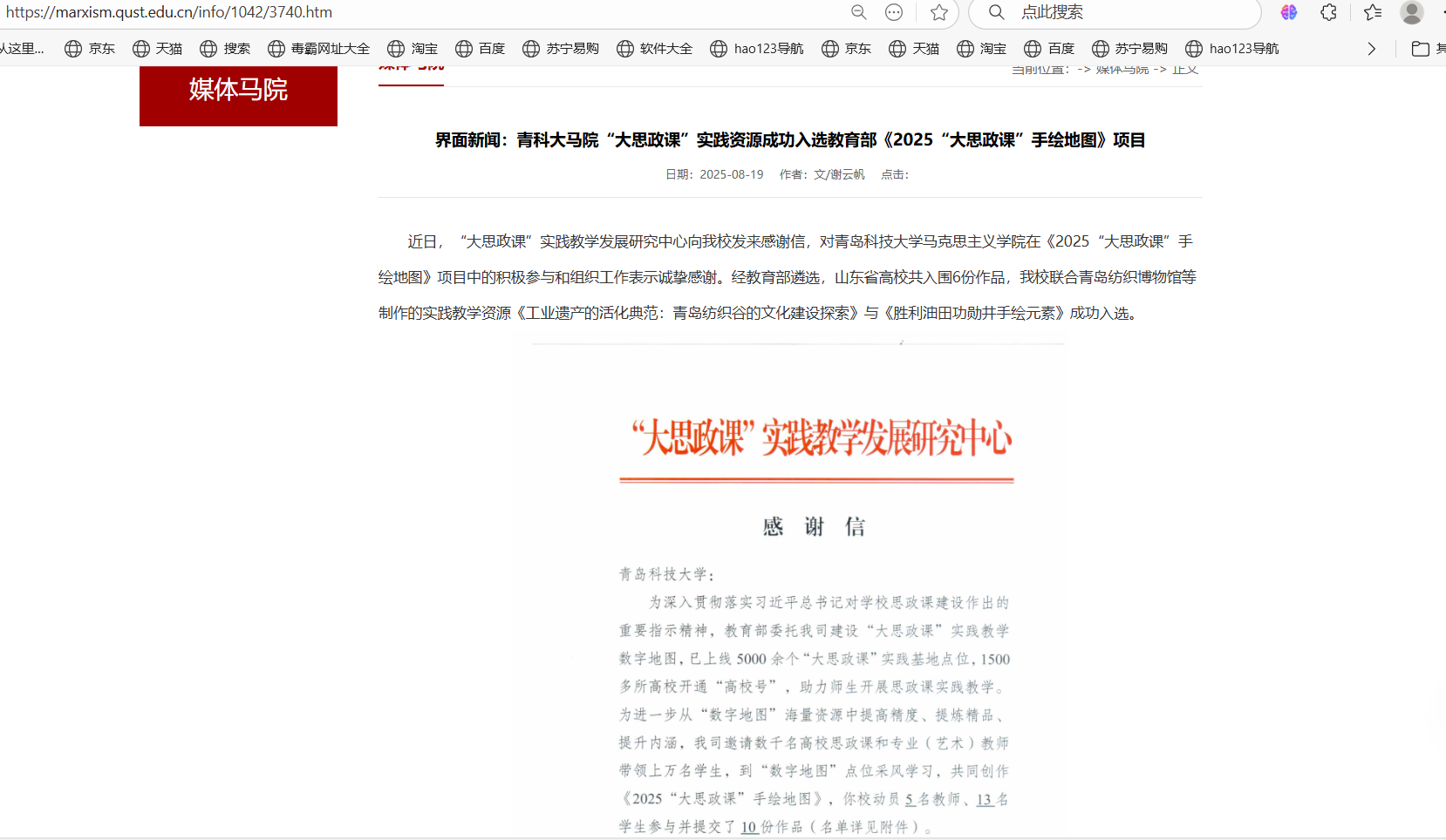 20250809界面新闻:青科大马院“大思政课”实践资源成功入选教育部《2025“大思政课”手绘地图》项目