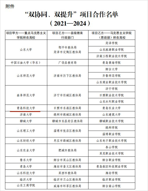 山东省教育厅“双协同、双提升”项目(2021-2024)合作单位