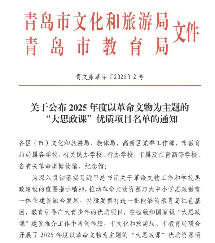 青岛市2025年度以革命文物为主题的“大思政课”优质项目